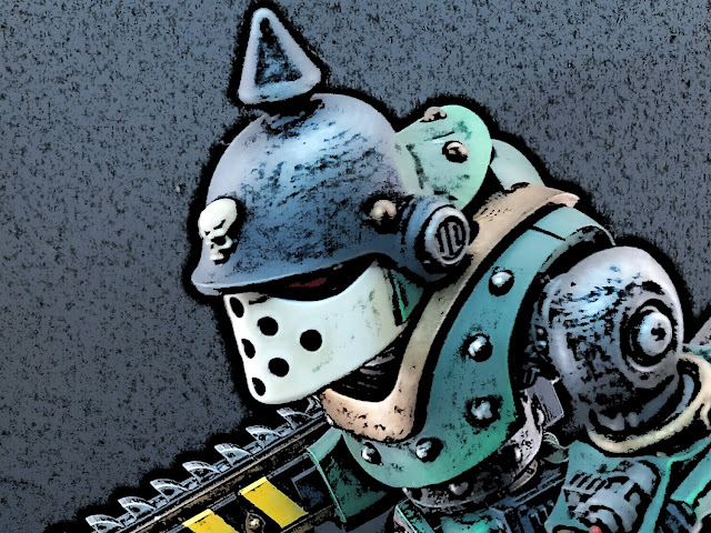 Avoir un  chevalier 40k  c'est bien, mais en avoir plusieurs c'est mieux. Si l'idée de varier les modèles (en puisant dans les vieux cartons Epic/Rogue trader) et les options est là, l'envie de lui adjoindre un modèle plus petit " à la armigère " a été plus forte. Elément essentiel des armées de chevalier à 40k car plus petit donc moins cher, décliné en 2 variantes, la version officielle et son look de poulet ne m'enchantait pas. Après avoir brassé quelques idées à base de vieux concept, j'ai finalement pris le chemin du free style : feuille blanche, une vague idée (un robot sur 2 jambes), l'envie d'un truc un peu oldschool sans trop savoir en quoi.  Les résultats ont été... parfois étranges, parfois rigolos (ridicule ?), rarement montrables, jusqu'à arriver à ce modèle ci. Je ne sais pas bien ou j'ai mis le coté oldschool dans ce projet car au final je ne lui trouve rien qui rappelle a minima les vieux modèles Epic. Pour autant, je b...
